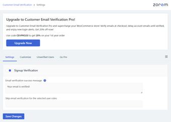 Customer Email Verification for WooCommerce es un plugin diseñado para mejorar la seguridad en el registro de usuarios mediante la verificación de correo electrónico basada en OTP (One Time Password). Este sistema asegura que solo se utilicen direcciones de correo electrónico válidas, reduciendo el spam y garantizando la autenticidad de los registros. Los usuarios deben verificar su correo electrónico antes de completar la creación de su cuenta, lo que contribuye a un entorno más seguro y confiable.